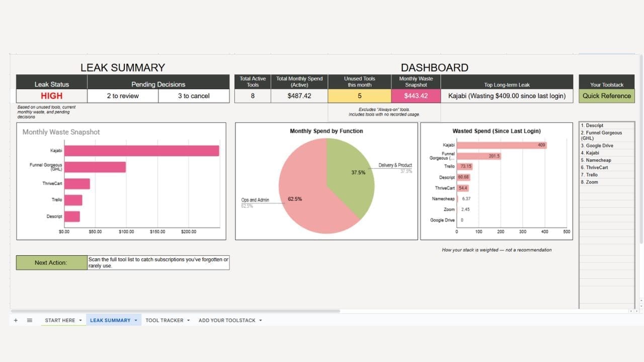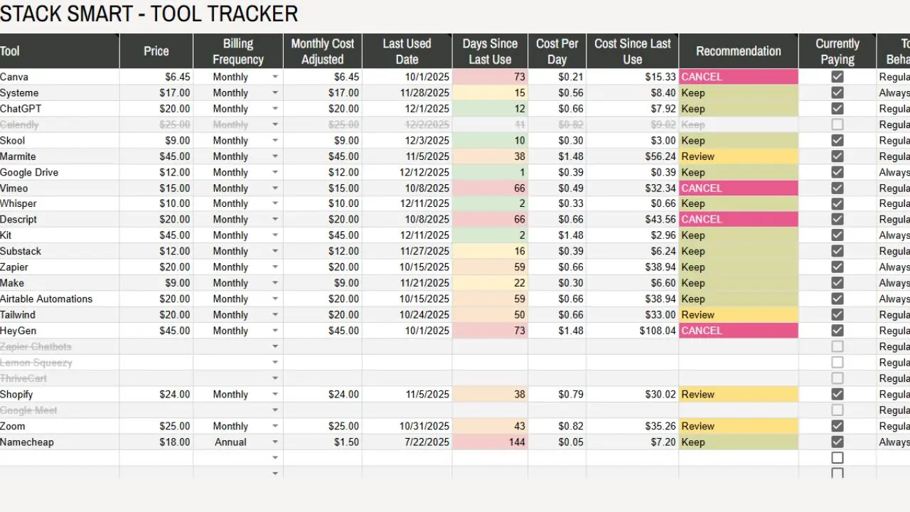 When you buy Stack Smart, you get a ready-to-use Subscription Leak Detector built into Google Sheets,