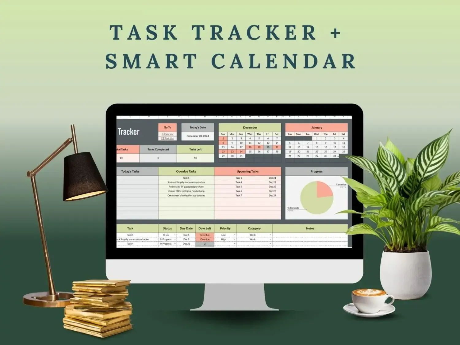Keep every task on track and every deadline in sight with this Task Tracker + Smart Calendar. Track unlimited tasks, see progress at a glance, and let the dashboard + auto-updating calendar handle the heavy lifting — so you stay focused on what matters.