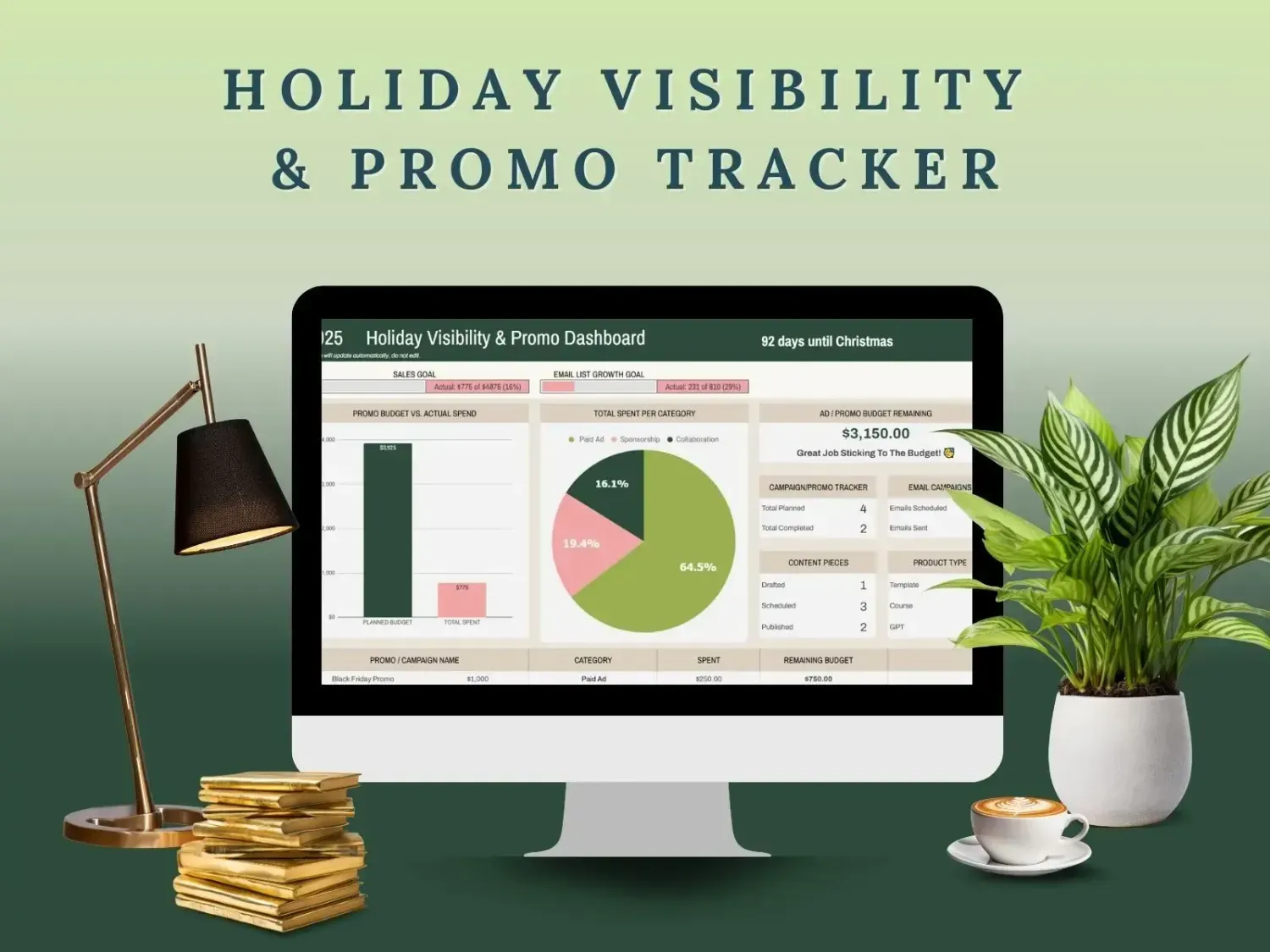With the Holiday Visibility & Promo Tracker, you’ll go from scattered and second-guessing to organised, confident, and in control. Map every campaign, track progress at a glance, and keep holiday stress low while your visibility — and profits — stay high.