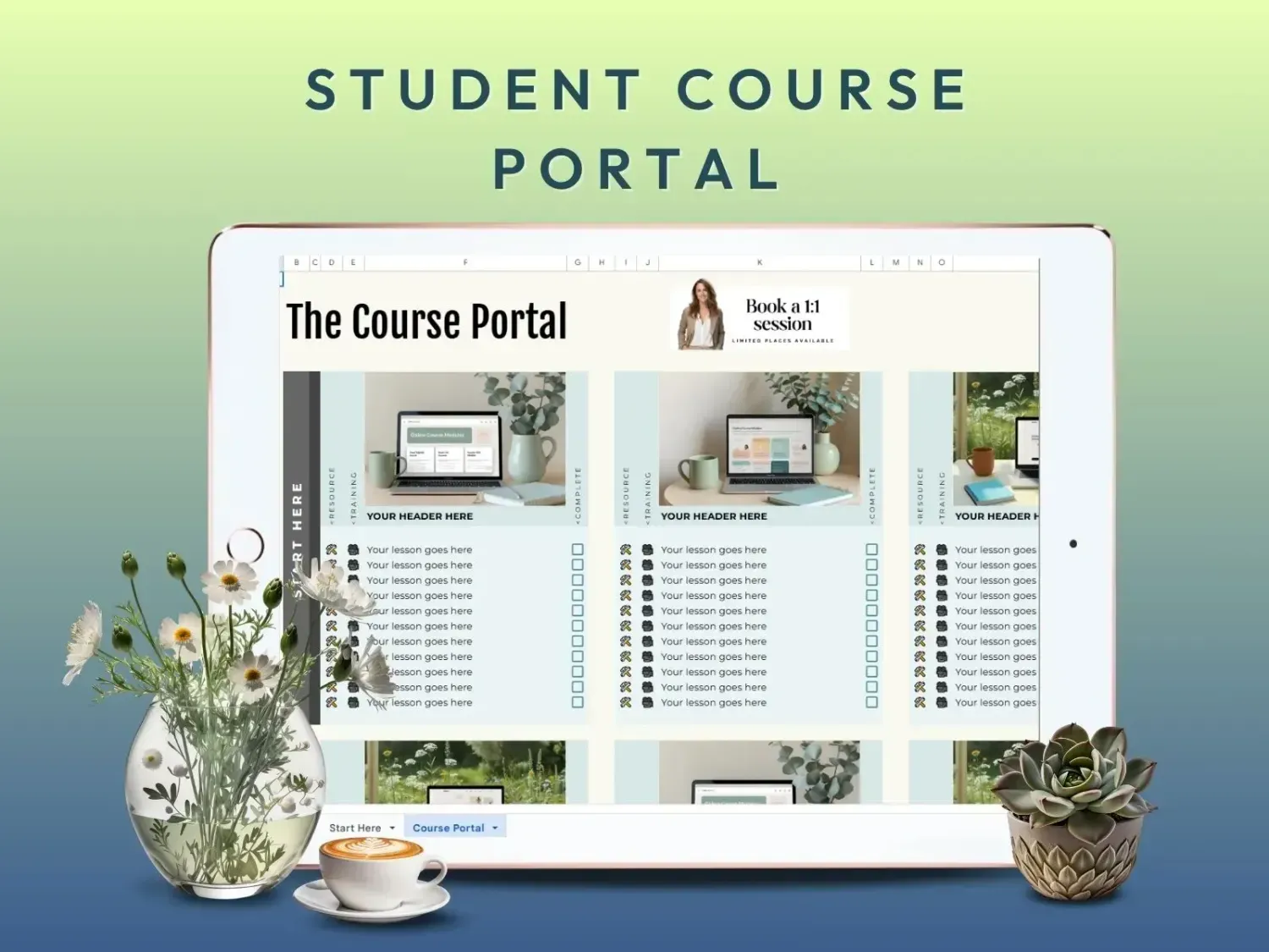 Tired of constantly sending out lesson links, answering “Where do I find this?” emails, and struggling to keep everything organised? This done-for-you Course Portal is your roadmap solution to streamline student access to all your course materials, in one place, forever!
